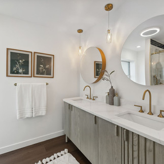 The master bathroom quickly became one of our favorite spaces. The shower we designed entirely from scratch, breaking away from standard market expectations and typical “safe” choices. My rebellious spirit was thrilled, and the end product speaks for itself.
